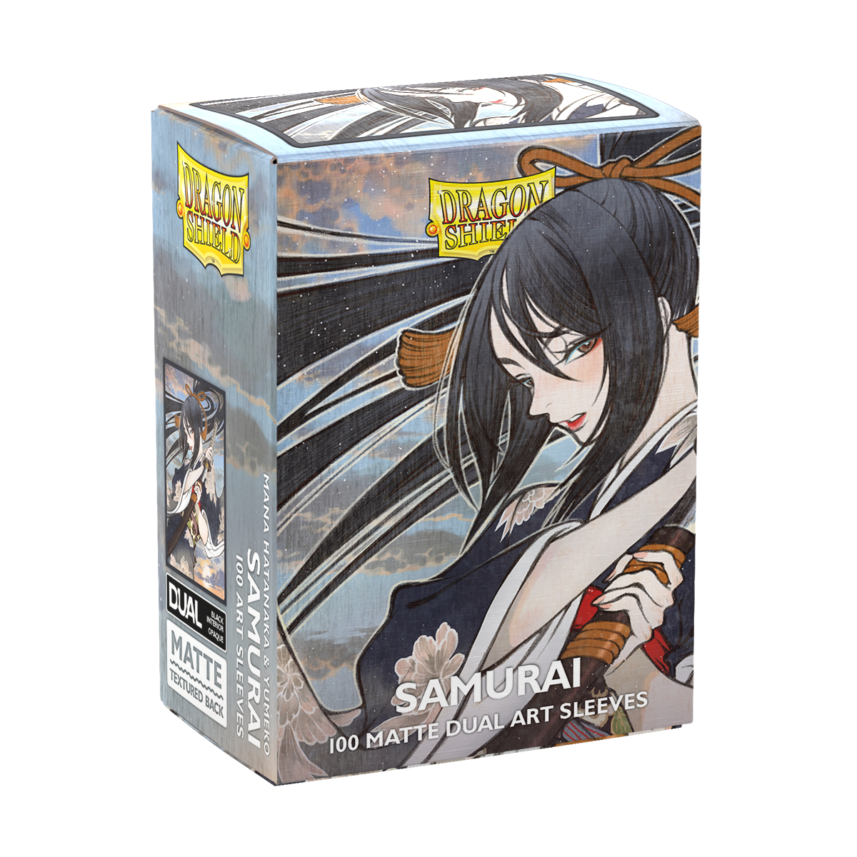 Stunning new Dragon Shield Matte Dual Art Sleeves featuring artwork by Japanese artist Yumeko. Using voice actor and content creator Mana Hatanaka as a model, Yumeko fuses a traditional Japanese style of illustration with Hatanaka's signature stylishness to create this gorgeous Samurai artwork.