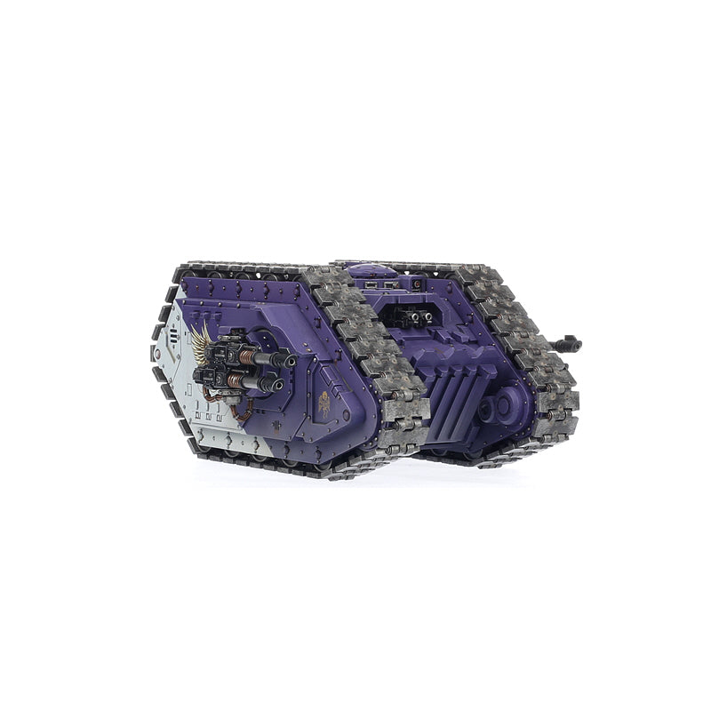 The Land Raider is regarded by many as the finest armoured fighting vehicle of its class in the Imperium’s arsenal, and is the mainstay battle tank of the Space Marine Legions. It is a phenomenally powerful war machine, its multi-layered composite armour and reinforced hull all but impervious to even heavy weapons, being a sealed unit designed to resist enemy attack from any approach. Intended to serve in almost any environment as both war machine and exploration vehicle, it can operate freely in war zones ranging from acid swamps to rad-deserts without any noticeable impediment to its performance, and can even operate in hard vacuum, ensuring there is no open battlefield on which its armoured wrath cannot be unleashed.