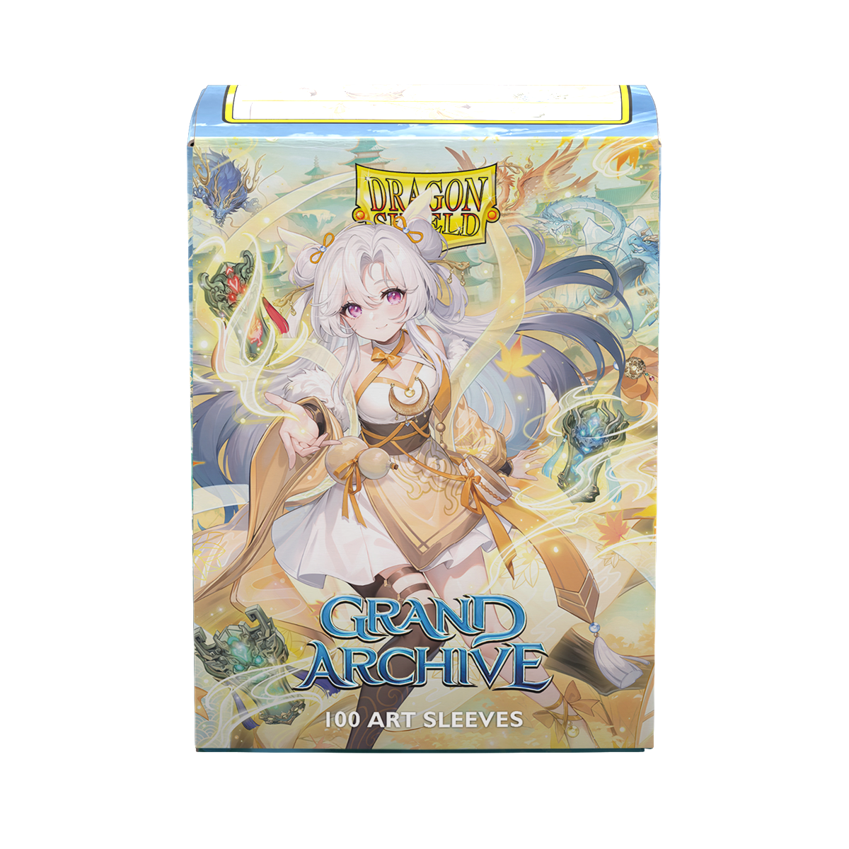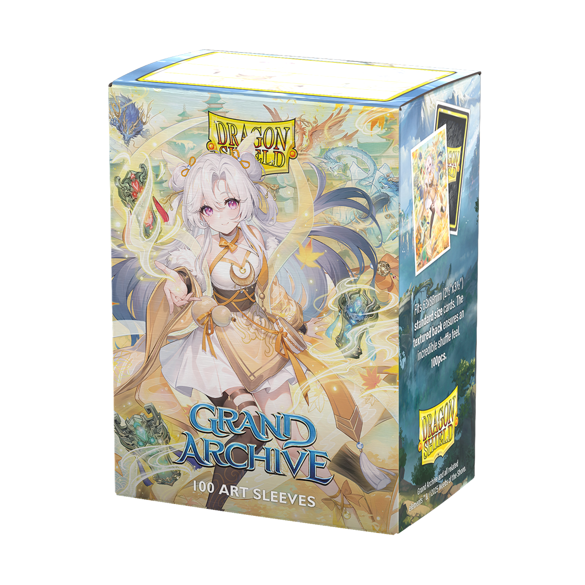 The Sleeves come in a reusable cardboard box containing 100 standard size sleeves for trading cards measuring up to 63x88 mm's (2½"x3½"). Great for TCGs like MTG, Pokémon, Lorcana and – of course – Grand Archive!